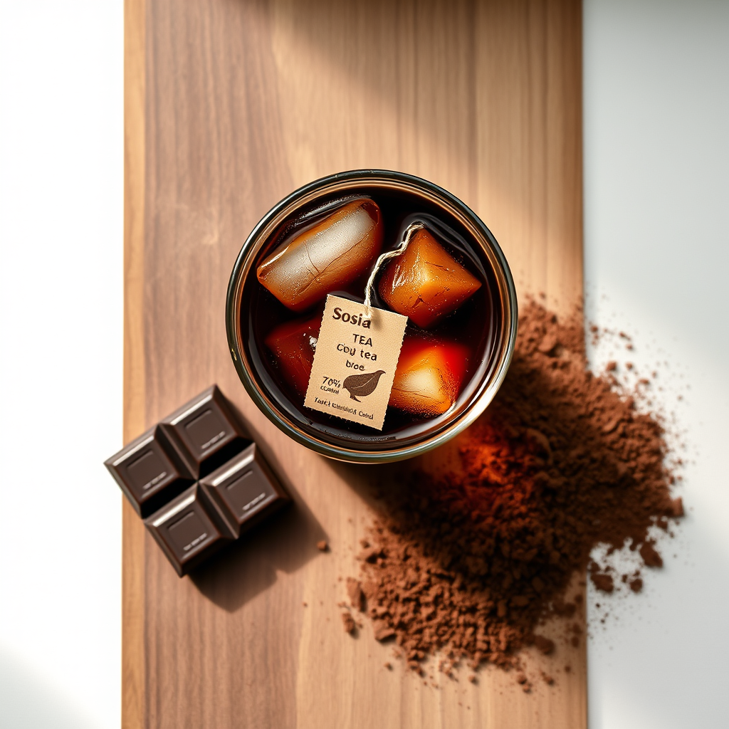 Rich black tea and velvety cocoa gently entwine through the cold brew — a warm, dessert-like companion.